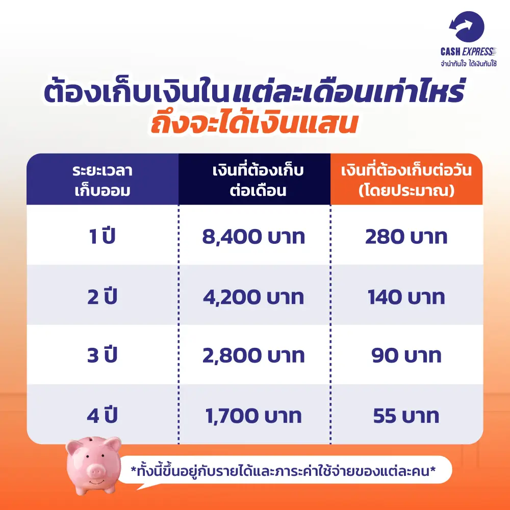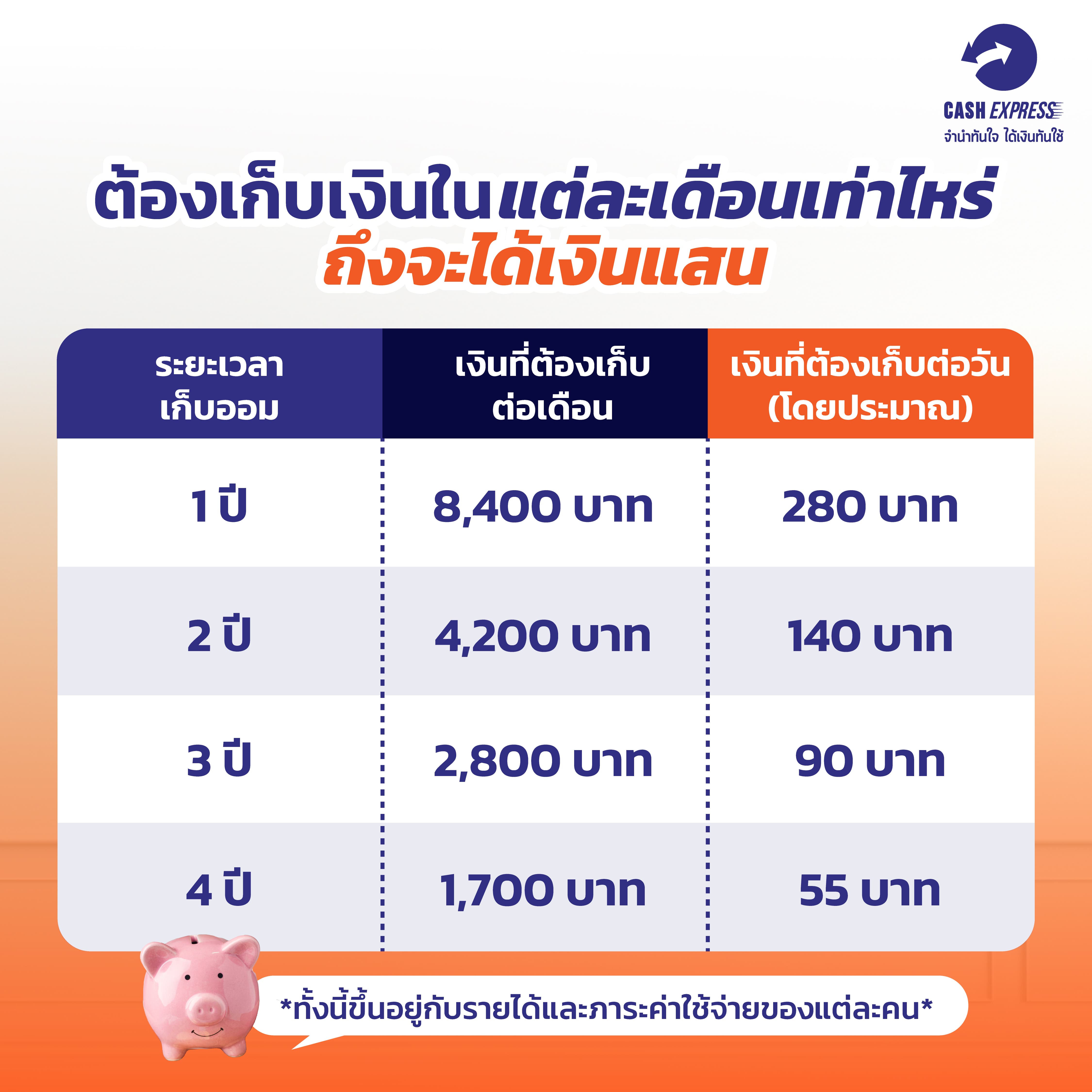 ต้องเก็บเงินในแต่ละเดือนเท่าไหร่ถึงจะได้เงินแสน