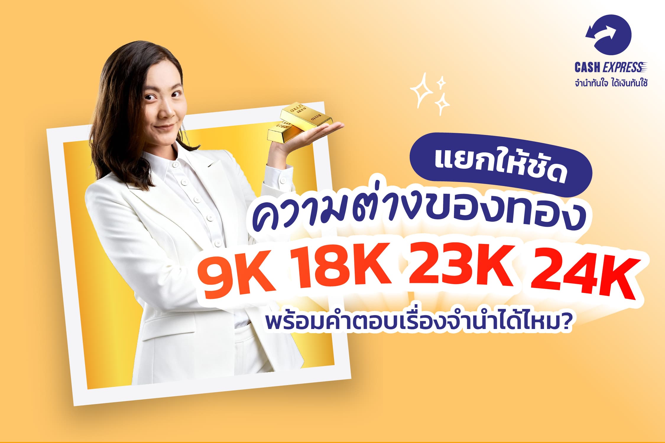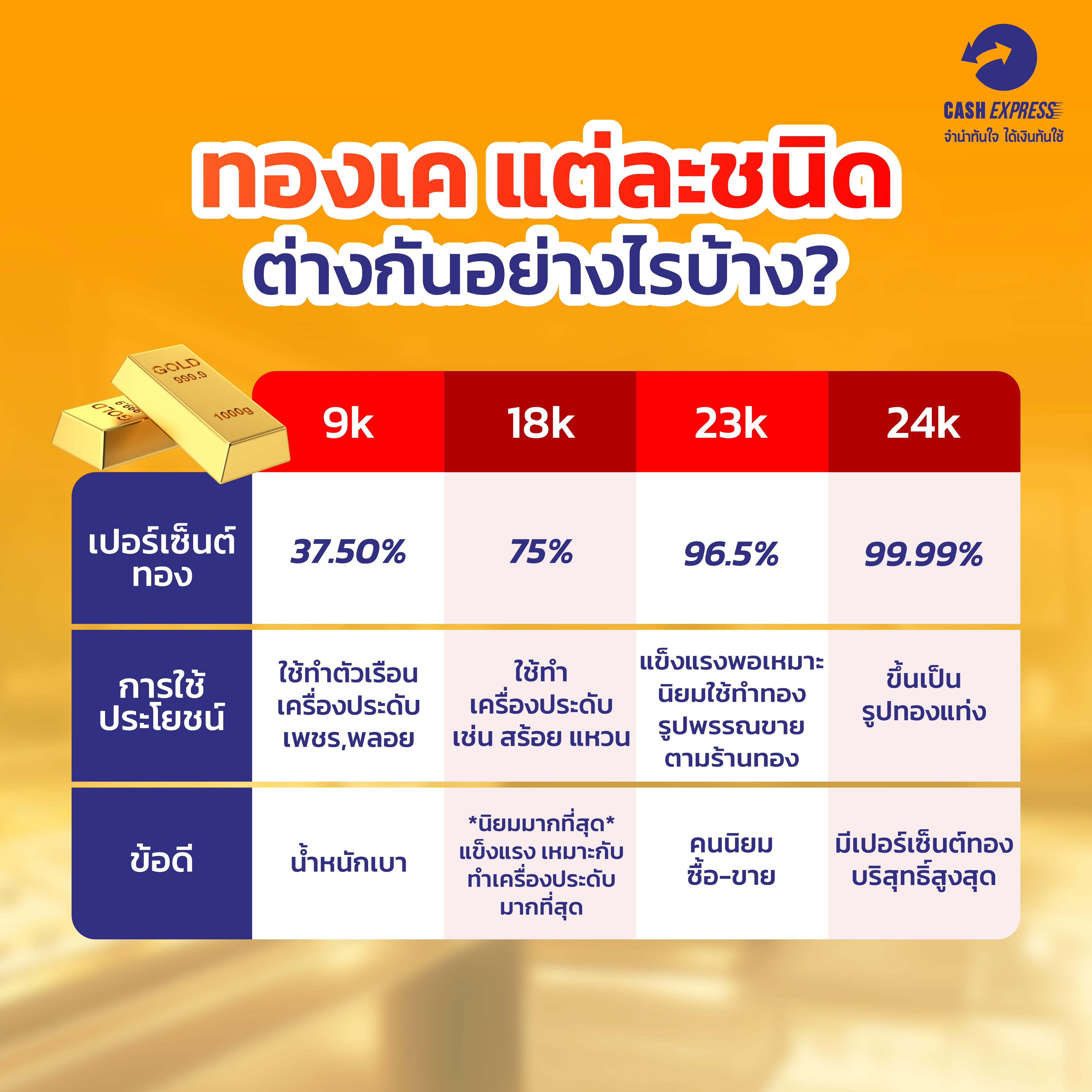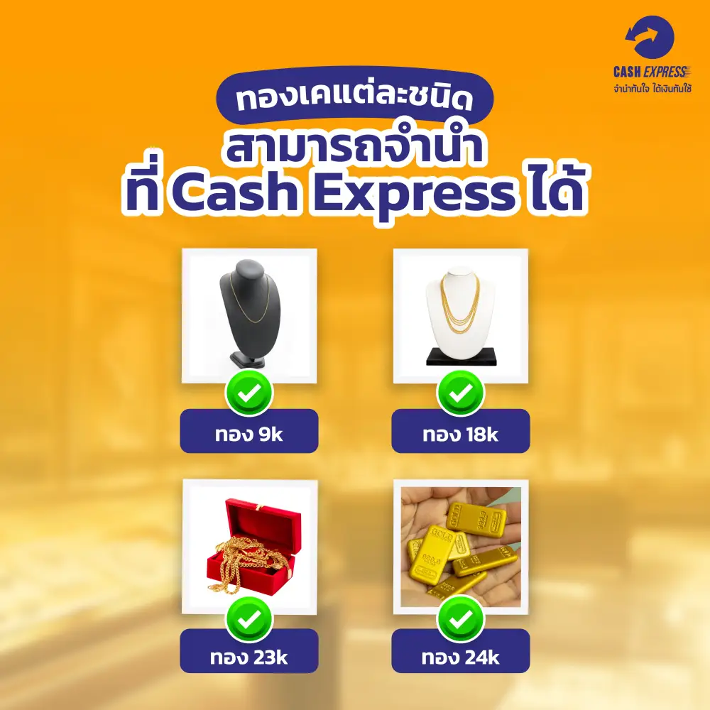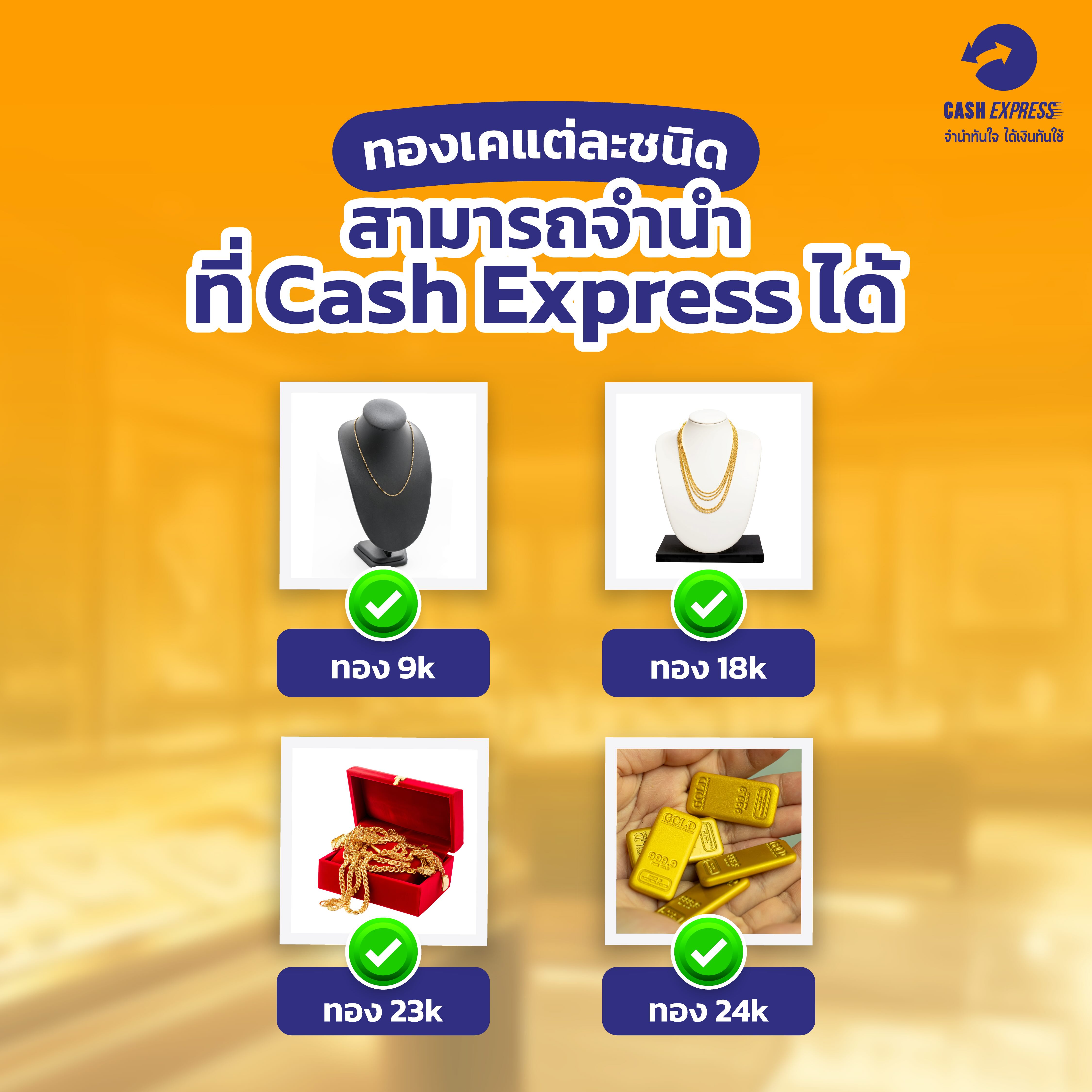 ทองเคแต่ละชนิดสามารถจำนำที่ Cash Express ได้