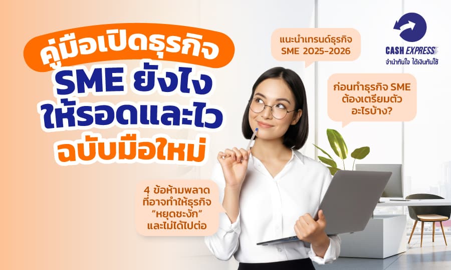 หลายคนจึงเริ่มเปิดธุรกิจ SME เพื่อทำในสิ่งที่ตัวเองชอบ มีอิสระในการทำงาน และไม่ต้องเป็นลูกจ้างใคร แต่เส้นทางนี้ก็ไม่ได้ง่าย เพราะกว่าจะประสบความสำเร็จก็ต้องมีล้มลุกคลุกคลานมานับไม่ถ้วน ซึ่งบางธุรกิจก็มีล้มเลิกกลางทางจนต้องยุติไป ในบทความนี้พี่แคชขอแนะนำคู่มือและแนวทางสำคัญสำหรับ “มือใหม่” ที่กำลังอยากเริ่มต้นธุรกิจ SME ว่าต้องศึกษาและเตรียมตัวยังไงให้ไปต่อได้อย่างยั่งยืน