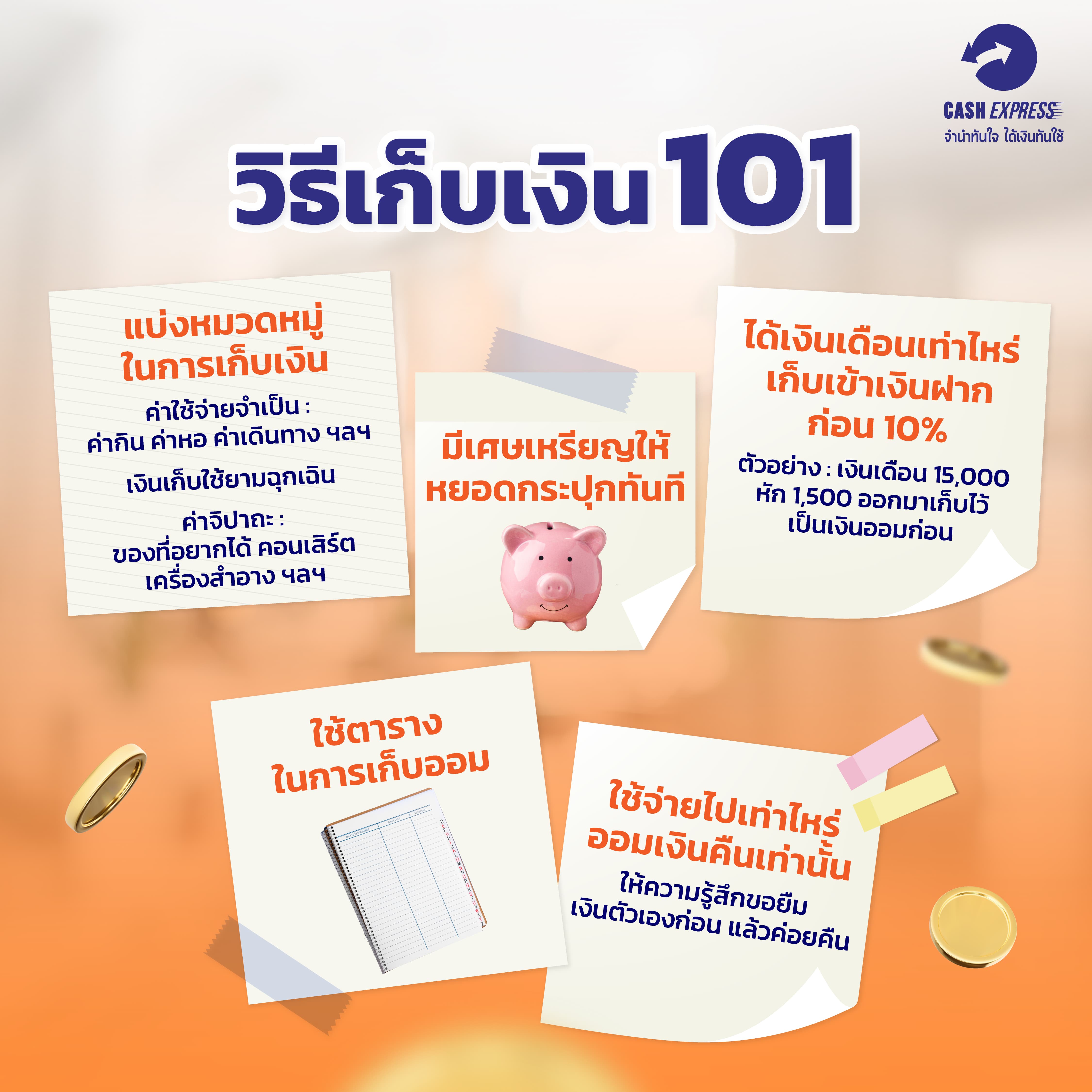 พี่แคชมัดรวม 5 วิธีเก็บเงินที่ใครๆก็สามารถทำได้ โดยไม่ตึงเกินไปและไม่หย่อนเกินไป ดังนี้
